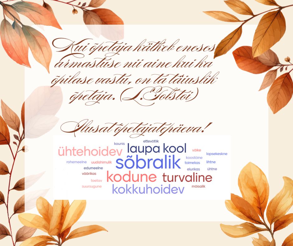 Türi vald tänas haridustöötajaid Loomise kuupäev 05.10.2025 Autor Mariann Villems Sügisandide uus elu Loomise kuupäev 01.10.2025 Autor Mariann Villems Üleeuroopaline spordinädal tõi koolipere Türi staadionile Loomise kuupäev 25.09.2025 Autor Mariann Villems Laupa Kooli sügisnäitus „Looduse imed“ Loomise kuupäev 17.09.2025 Autor Mariann Villems Vaata rohkem