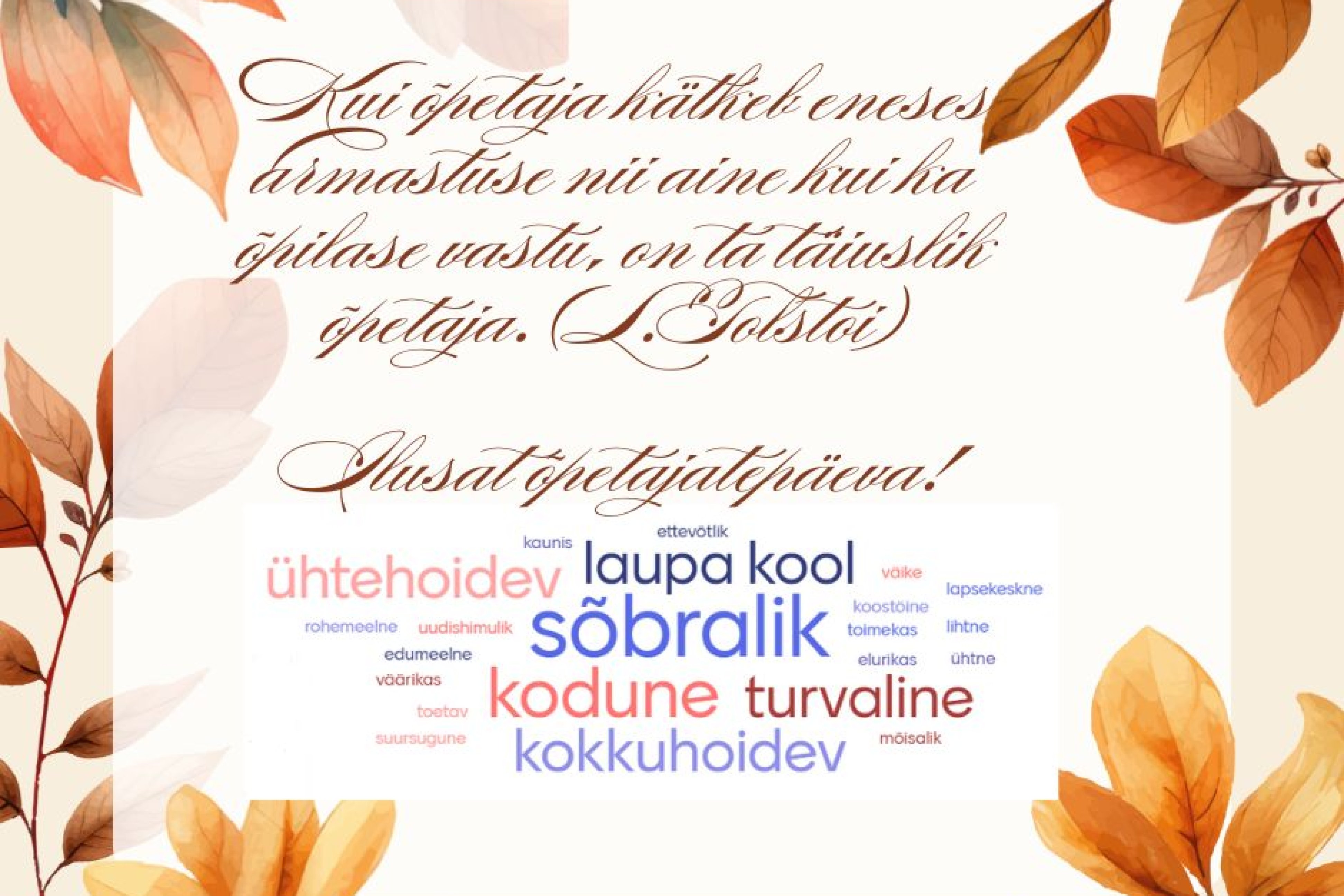 Türi vald tänas haridustöötajaid Loomise kuupäev 05.10.2025 Autor Mariann Villems Sügisandide uus elu Loomise kuupäev 01.10.2025 Autor Mariann Villems Üleeuroopaline spordinädal tõi koolipere Türi staadionile Loomise kuupäev 25.09.2025 Autor Mariann Villems Laupa Kooli sügisnäitus „Looduse imed“ Loomise kuupäev 17.09.2025 Autor Mariann Villems Vaata rohkem
